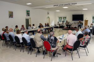 Zum Ausklang gab es bei den Eziden dann Kaffee und Gebäck und einen Vortrag über die Religionsgemeinschaft, die es seit ca. 3000 v. Chr. gibt und die immer wieder verfolgt und getötet wurden. Osman Güden hatte sich, um aus seinem Buch zu zitieren Verstärkung geholt. Michael Schuck, Pfarrer im Ruhestand. Es folgte dann noch eine konstruktive Diskussion, an der sich viele Senioren beteiligten. Damit wurde der Nachmittag um fast eine Stunde überzogen.