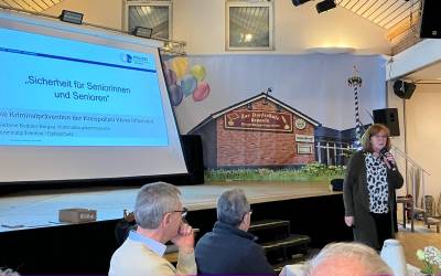 Als Referentin war Frau Kriminalhauptkommissarin Bodden-Bergau vom Kriminalkommissariat 2 Kalkar -Kriminalprävention- zum Thema Sicherheit für Senioren/Seniorinnen eingeladen. Der sehr informative und sensibilisierende Vortrag von Frau Bodden-Bergau erstreckte sich von Schockanrufen (Enkeltrick) über falsche Polizeibeamte, Bankmitarbeiter, Gewinnspiele bis zu Phishing-Mails. Dass es sich bei den Themen durchaus um aktuelle Themen handelt, zeigte sich in der sich anschließenden regen Diskussion sehr deutlich. Die Senioren Union bedankt sich hiermit ausdrücklich bei Frau Bodden-Bergau für Ihren Vortrag.