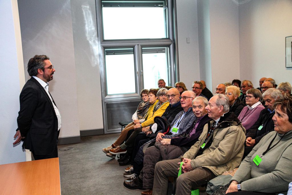 Nach einem Vortrag zur Geschichte des Reichstagsgebäudes und zur Arbeitsweise des Deutschen Bundestages empfing Rouenhoff die Besuchergruppe nahe dem Plenarsaal zu einer einstündigen Diskussion. Das Interesse der Besucher richtete sich insbesondere auf aktuelle Themen, wie die hohen Energiepreise und die Versorgungssicherheit im Winter 2022/2023 sowie die hohe Abhängigkeit der deutschen Volkswirtschaft von