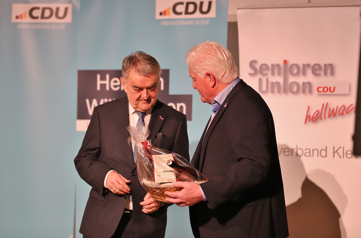 Heinz van Baal, Vorsitzender der Senioren-Union (SU) im Kreis Kleve, hatte nach eigenen Angaben vier Jahre auf den Besuch von NRW-Innenminister Herbert Reul gewartet. Am Dienstagabend war es so weit: Der CDU-Politiker sprach vor 250 Parteikollegen im Haus am See im Gocher Ortsteil Kessel. Ein Heimspiel, immer wieder gab es tosenden Applaus für den obersten Dienstherren der Landespolizei. „Herbert Reul ist der wohl beliebteste Politiker im Land, ein Glücksfall für Nordrhein-Westfalen“, so van Baal. Der CDU-Landtagsabgeordnete Günther Bergmann dankte Reul dafür, dass es im Kreis Kleve wieder mehr Polizisten gebe. Er sagte: „Wir sehnen uns nach dem normalen Leben, nach einem auch für die Kinder und Enkel guten Leben. Herbert Reul steht für eine Konstante, die einen großen Teil dessen ausmacht: die Sicherheit.“